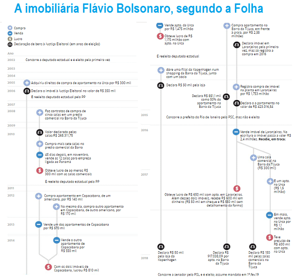Publico, ao final do post, o infográfico veiculado hoje pela Folha, que mapeia os negócios imobiliários de Flávio Bolsonaro,