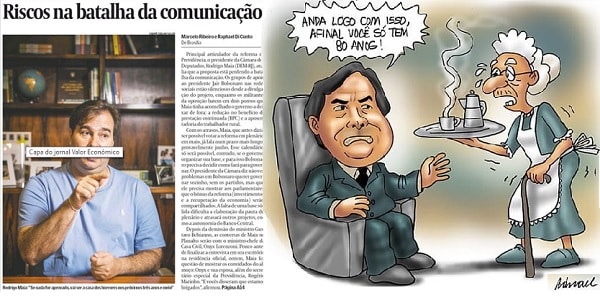 Traduzindo o politiquês: nem ele nem os deputados vão segurar a rebordosa de impopularidade sem que Bolsonaro e seus minions ponham a cara a tapa. E, pelo que se lê nas redes sociais, está bem difícil conseguir unidade nas falanges do “Mito”, em boa parte composta por segmentos da classe média atingidos em cheio pelo aumento do tempo de contribuição e de idade.