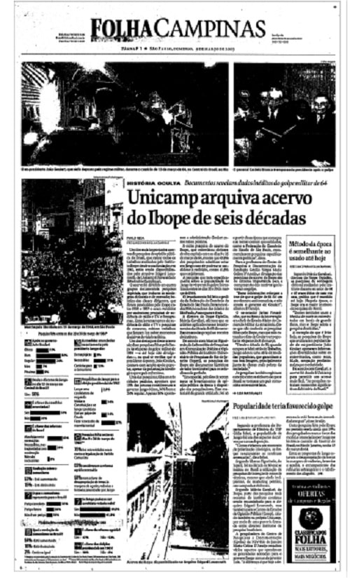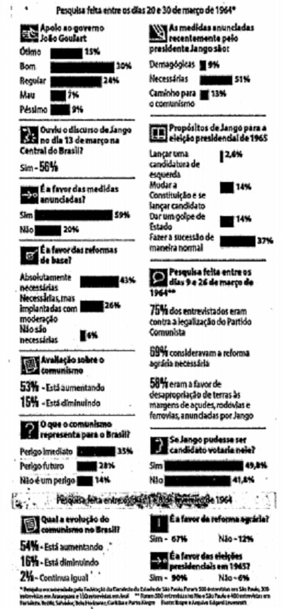O Ibope fez duas pesquisas, em fevereiro e no final de março de 1964. Poucos dias antes do 31 de março/1° de abril, portanto.