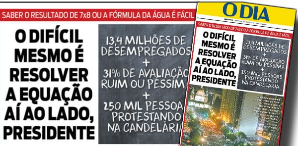 A capa do popular jornal carioca O Dia, com ironia, vai a direto à linha do processo político: crise ecômica conduz à insatisfação, insatisfação conduz à rejeição e rejeição, cedo ou tarde, conduz a protestos.