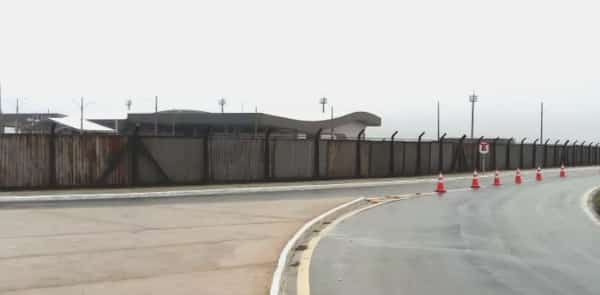 Tapumes em toda a volta da estação de passageiros, onde será feita a cerimônia.