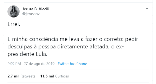 Até mesmo a procuradora que, no Twitter, pediu desculpas pelo que fez, embora, cinicamente, tenha voltado a duvidar da veracidade das mensagens, embora ela própria o reconheça, ao chorar lágrimas de jacaré: