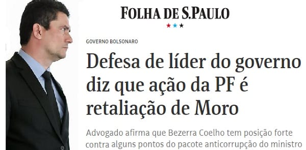 A defesa de Fernando Bezerra Coelho, líder do governo Jair Bolsonaro no Senado, diz, na Folha, que o Senador foi alvo, hoje, de operação da Polícia Federal “por sua atuação política combativa em relação a alguns pontos do pacote anticorrupção, encabeçado pelo ministro da Justiça, Sergio Moro”, diz a Folha.