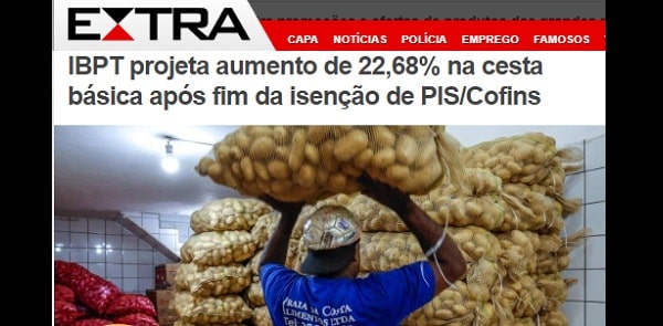 De qualquer forma, vale ler a notícia do Extra, com dados do Instituto Brasileiro de Planejamento e Tributação estimando que isso faria o preço do conjunto de produtos considerados essenciais para a família brasileira subir, em média, 22,68%.