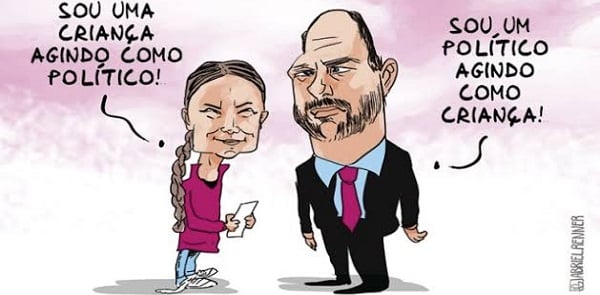 Mas se Greta é jovem e generosa, talvez mesmo quase uma criança, Bolsonaro age como um rapazote, querendo expor suas virtudes de macho, desqualificando-a por dizer as coisas como elas são.