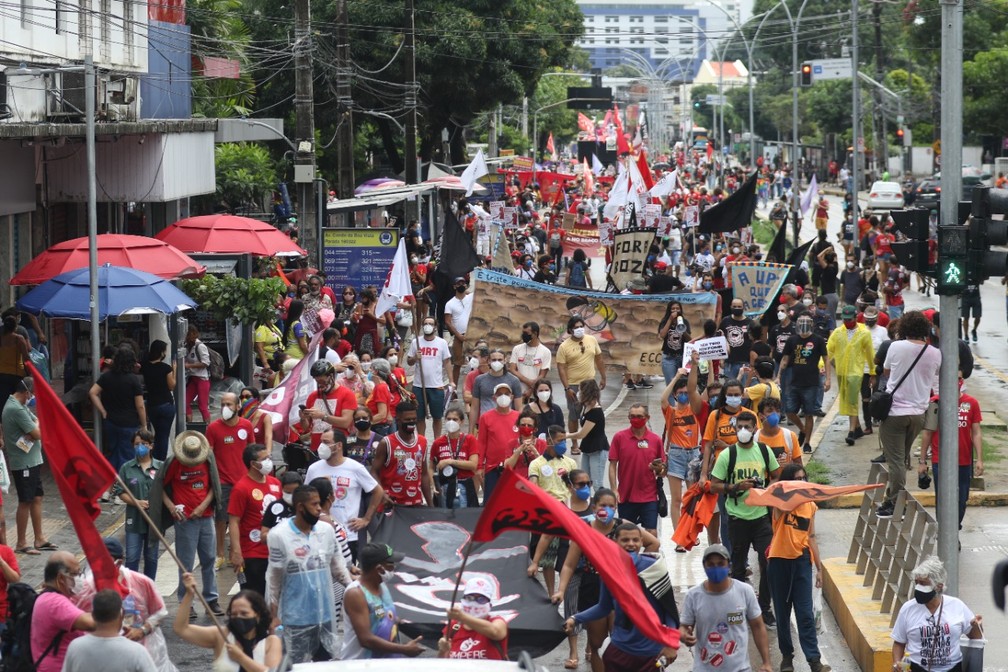 Movimentos sociais, centrais sindicais e estudantes se juntaram ao movimento nacional do 19J para protestar contra a gestão do presidente Jair Bolsonaro (sem partido) hoje. A concentração teve início às 9h na Praça do Derby, área central do Recife. As informações são da Folha de Pernambuco.