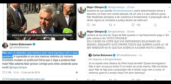 Carlos Bolsonaro e o senador Major Olímpio meteram-se numa daquelas brigas de colégio de trocar cusparadas e xingar a mãe do oponente.